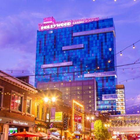 Hollywood Casino at Greektown is located in the Greektown distract of Detroit.  Featuring a 400-room hotel, a large casino with a variety of games, and multiple dining and entertainment options. The casino includes a sportsbook and a variety of table games and slot machines. The hotel offers luxury suites.